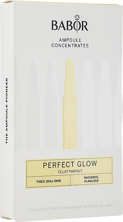 Babor Perfect Glow Ampoules — це інтенсивний засіб для миттєвого сяйва та зволоження шкіри. Ампули містять активні інгредієнти, що допомагають зменшити тьмяність шкіри, надають їй здорового вигляду, покращують текстуру та забезпечують свіжість. Ідеально підходять для використання перед важливими подіями або в разі потреби термінового покращення вигляду шкіри.